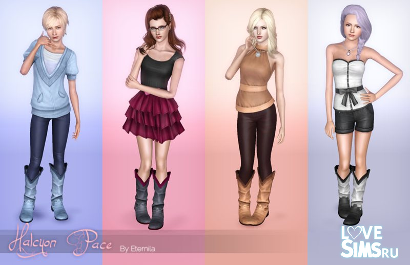 Женские ковбойские сапоги, подходят только для молодых и взрослых симов. Может использоваться в повседневной, официальной и верхней одежде. Доступно 4 канала для изменения цвета.