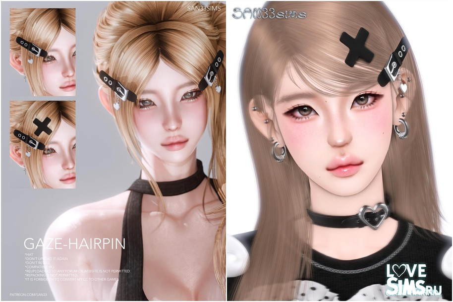 Три варианта заколок-невидимок, найти можно в категории с головными уборами. Оригинальное название Gaze-Hairpin от san33.