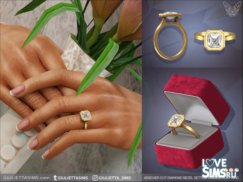 Обручальное кольцо с бриллиантовым ободком огранки Asscher поставляется в комплекте с 3 образцами.