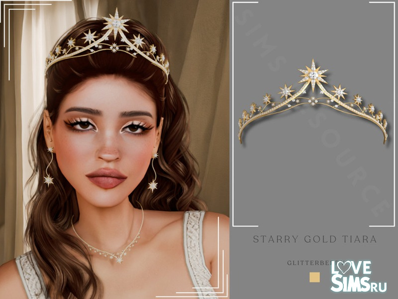 Золотая тиара со звездными мотивами и бриллиантами. Представлена в золотом варианте.