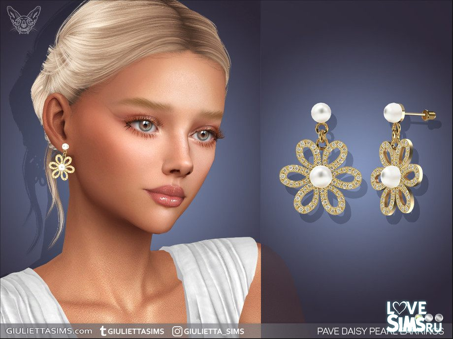 Очаровательные серьги с жемчугом в форме ромашки представлены в 3 вариантах. Оригинальное название Daisy Pave Pearl Earrings от Feyona.