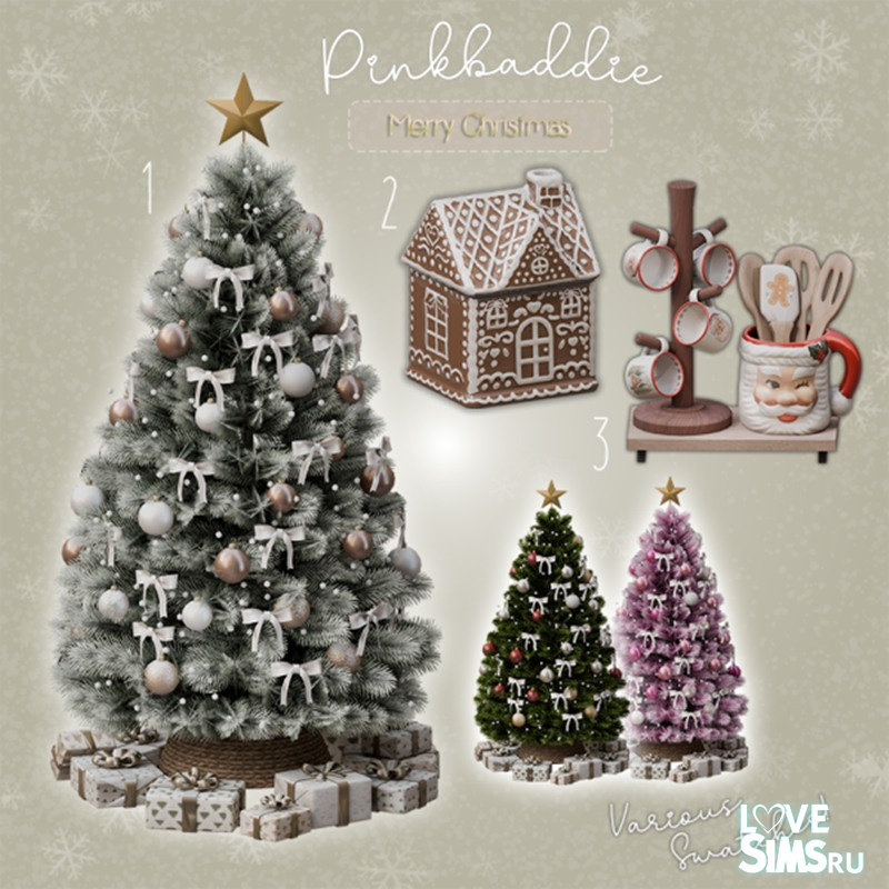 1. Рождественская елка включает в себя гирлянды, украшения и подарки отдельно.