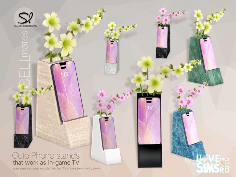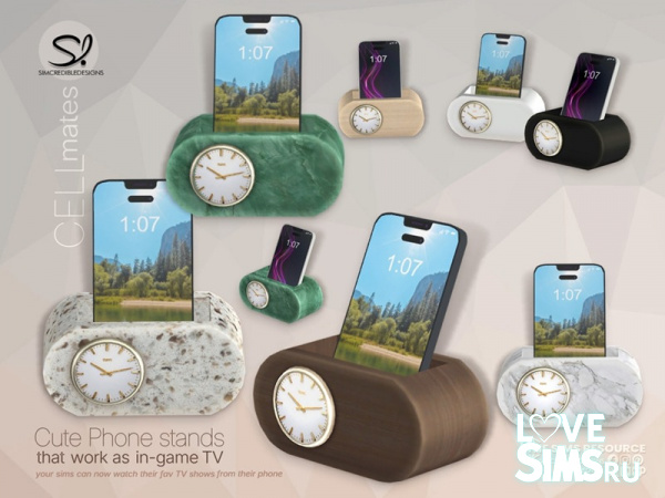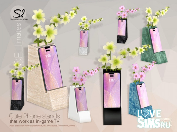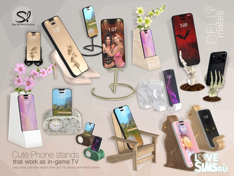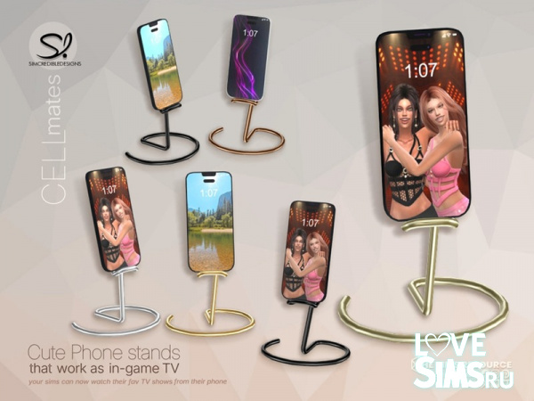 Cell mates - это набор из 8 различных моделей подставок для мобильных телефонов. Все они функционируют как телевизоры. Таким образом, ваши симы не смогут взять эти телефоны. Но вы можете разместить эти подставки на любом прикроватном столике, или на журнальном столике в гостиной, или на любой маленькой полке в квартире. И ваши симы смогут смотреть свои любимые передачи, как на больших телевизорах.