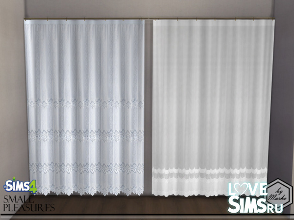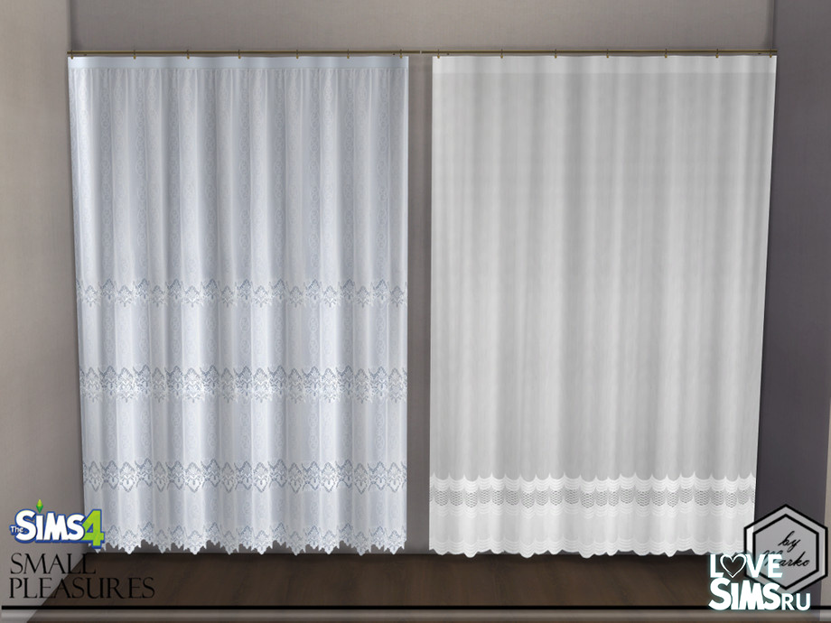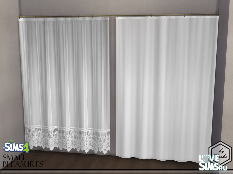 Плотные атласные шторы и прозрачный тюль. Это шторы для стен средней высоты. (Вы можете комбинировать эти шторы и тюль, используя код bb.moveobjects . Используйте клавишу 9, чтобы поднять объект, или клавишу 0, чтобы опустить его).