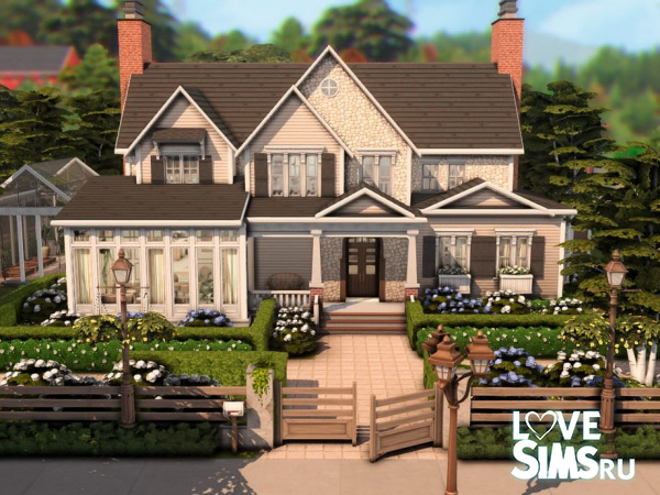 В этом очаровательном загородном семейном доме есть сад, в котором преобладают яркие гортензии, которые очаровывают с первого взгляда. Рядом с домом находится оранжерея, где можно выращивать растения и зелень. В задней части есть просторная площадка для барбекю, идеально подходящая для проведения выходных. В целом, он передает теплоту, единение и простую красоту семейной жизни.