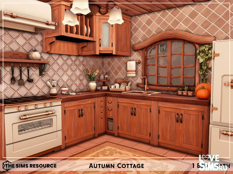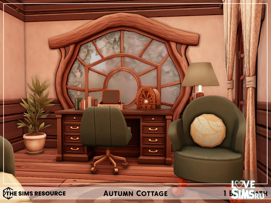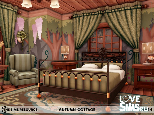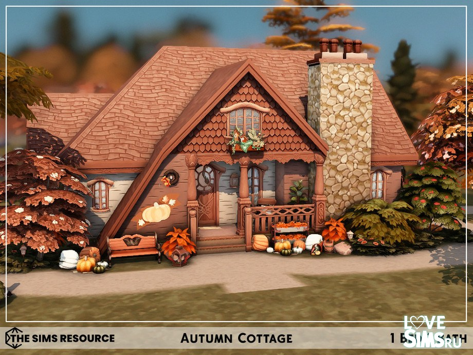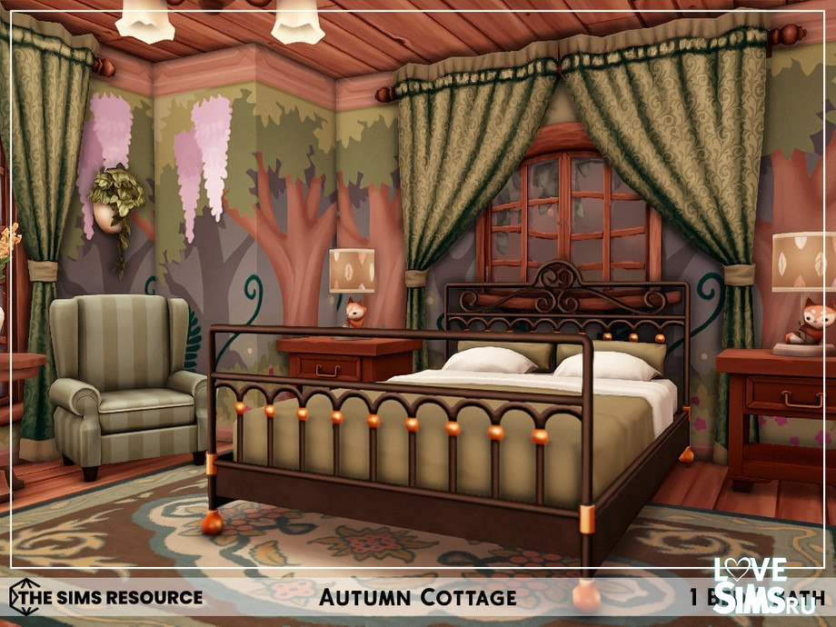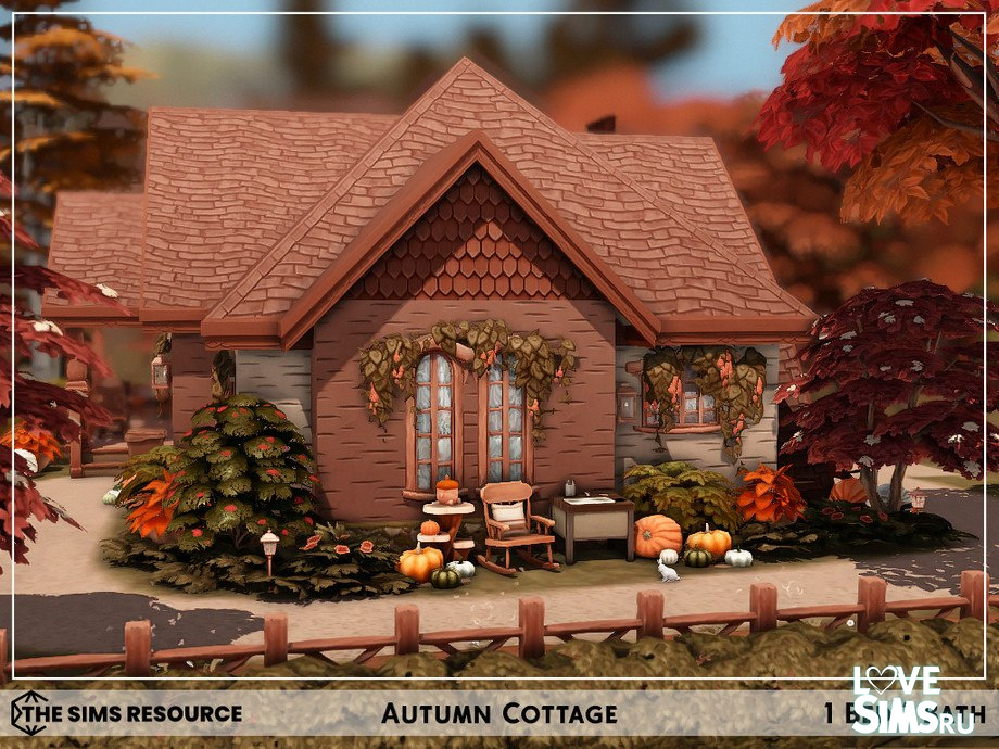 Небольшой уютный домик в осенней тематике включающий только спальню и одну ванную комнату. Размер лота 30х20.