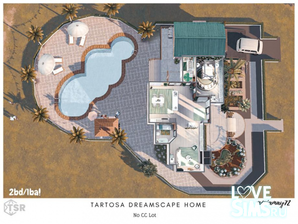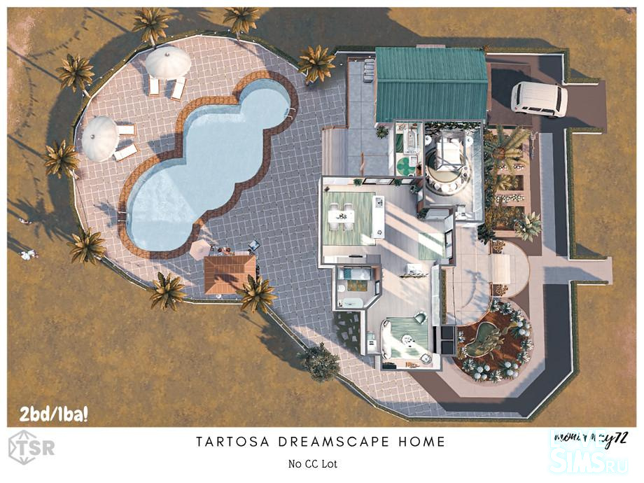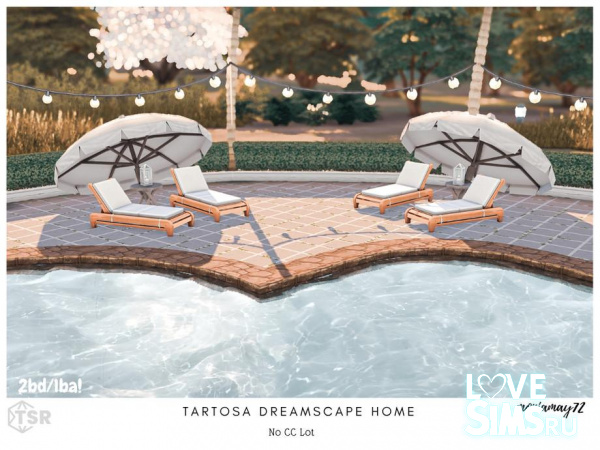 Прекрасный семейный дом американского мастера. Размер 40 на 30. В нем 2 спальни и 1 ванная комната. Пользовательский контент не использовался. Оригинальное название Tartosa Dreamscape Home NoCC Lot от Moniamay72.