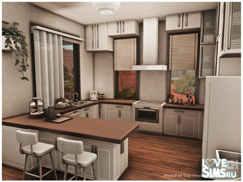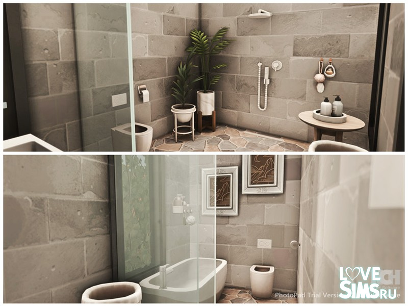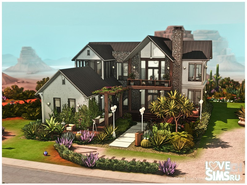 Загородный двухэтажный дом с небольшим садом с множеством растений. Размер участка 30X20.