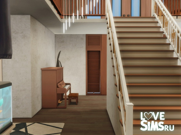 Ester - это светлый, элегантный семейный дом с элементами современной изысканности. В нем есть 5 спален и 3 ванные комнаты, просторная гостиная открытой планировки и большие панорамные окна, которые наполняют интерьер естественным светом. Этот дом с частным гаражом, уютным камином и стильным минималистским дизайном сочетает в себе комфорт, функциональность и неподвластный времени шарм, идеально подходящий для симов, которые любят изысканную и в то же время домашнюю жизнь.