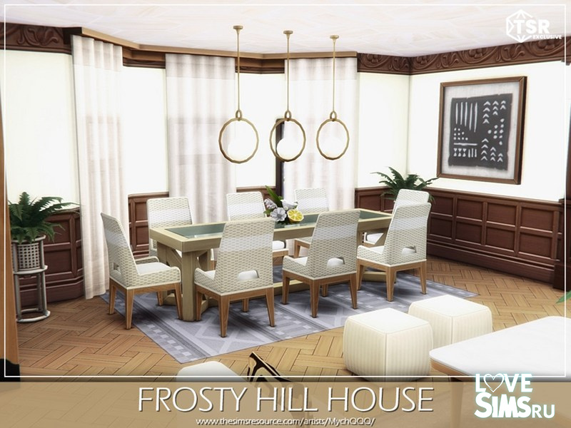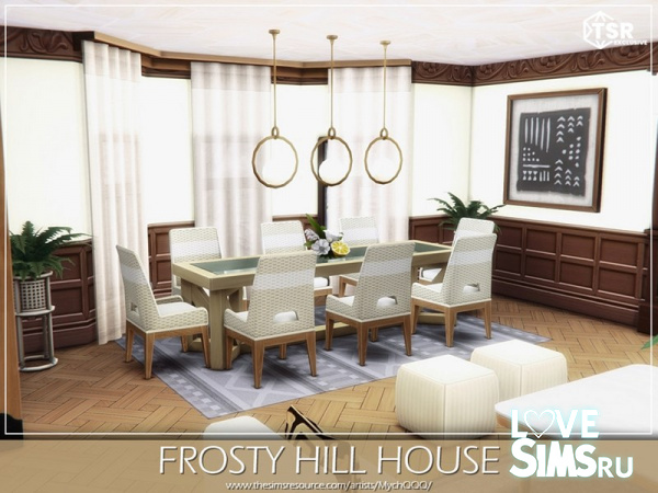 Дом трёхэтажный, с несколькими выступами, крышами разной высоты. Размер участка: 40x30.