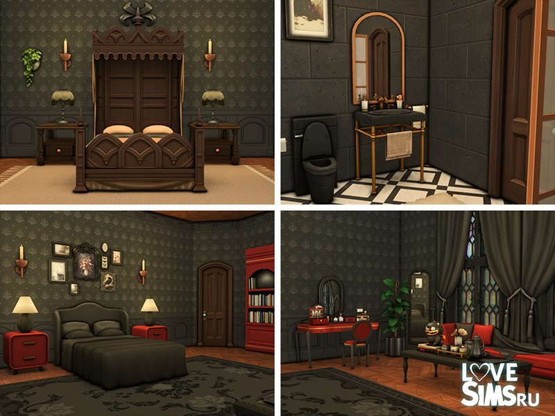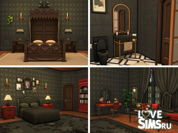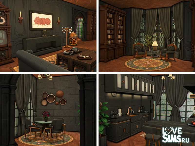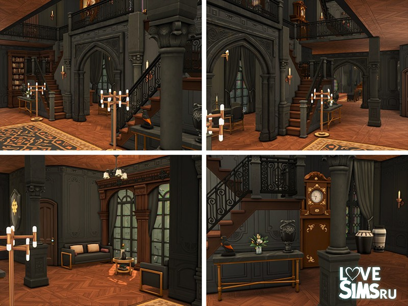 Возможно, это самая масштабная работа, которую я делала до сих пор, или, по крайней мере, мне так кажется. Я действительно влюблена в нее! Мне потребовалась целая вечность, чтобы воплотить все в точности так, как я себе представляла, но цвета получились идеальными. Интерьер - моя любимая часть интерьера, мрачный, уютный и величественный одновременно. Я действительно хотела смешать современность с традициями, и мне кажется, что здесь это очень хорошо работает. В моем воображении это мог бы быть дом королевской семьи вампиров или просто могущественный готический суд, правящий из тени.