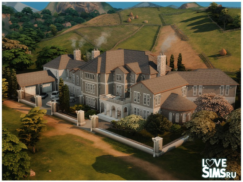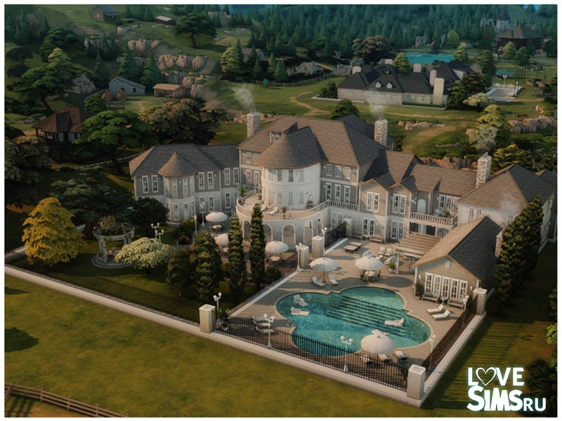 Большой особняк, расположенный в холмистой местности. На территории расположен бассейн лежаками и зонтиками вокруг. Сад также содержит беседку. Внутри: кухня, гостиная, 8 спален и 9 ванных комнат. Размер участка 64X64.