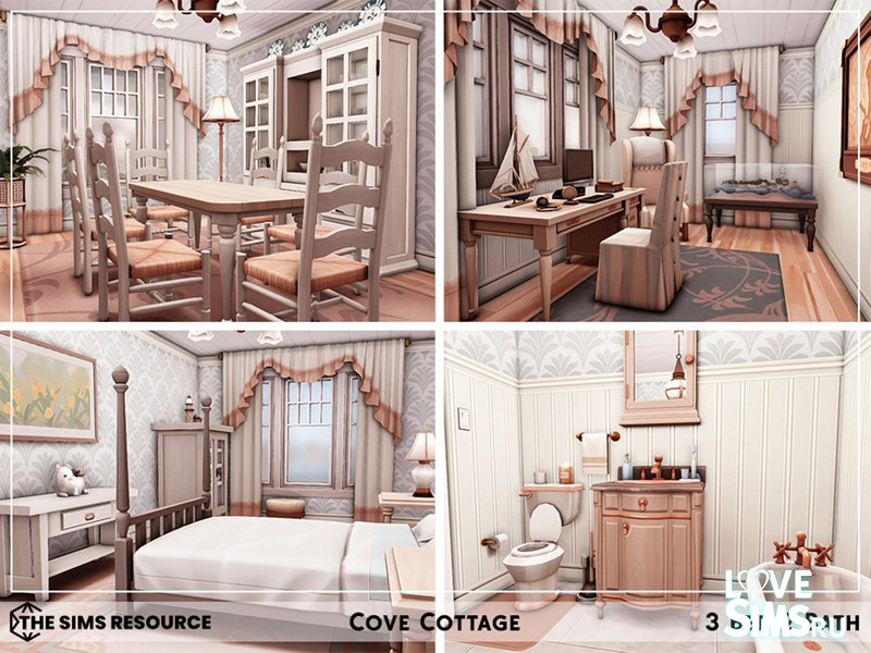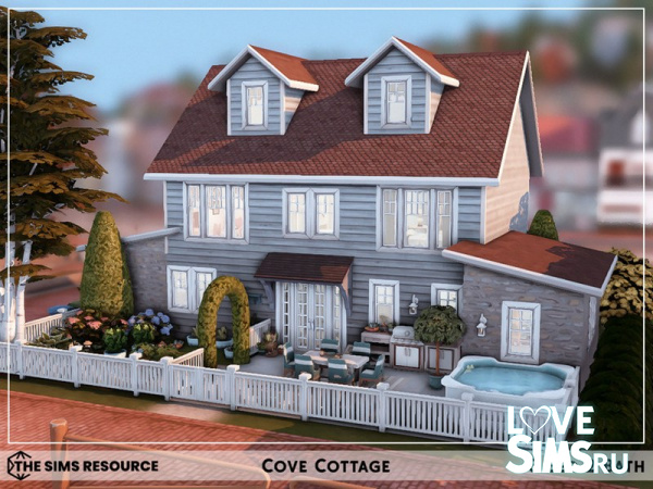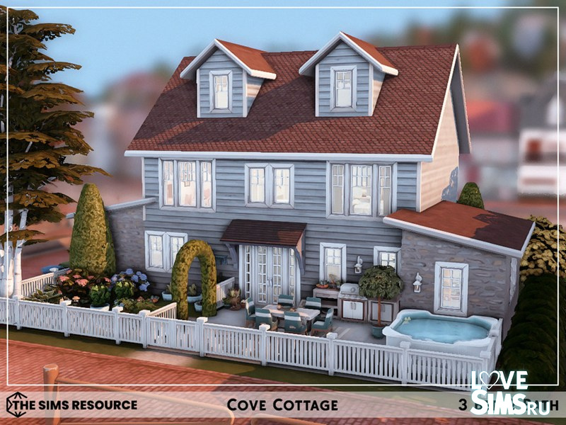Маленький коттедж в бухте, размер участка 20х20. Содержит: 3 спальни, 2 ванные комнаты, гостиную, кухню, столовую и кабинет.