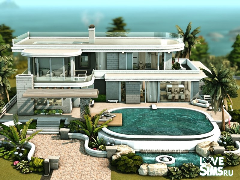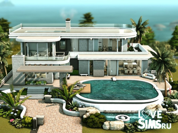 Дом выполнен в стиле модерн с гладкими линиями, большими стеклянными окнами и просторными балконами.