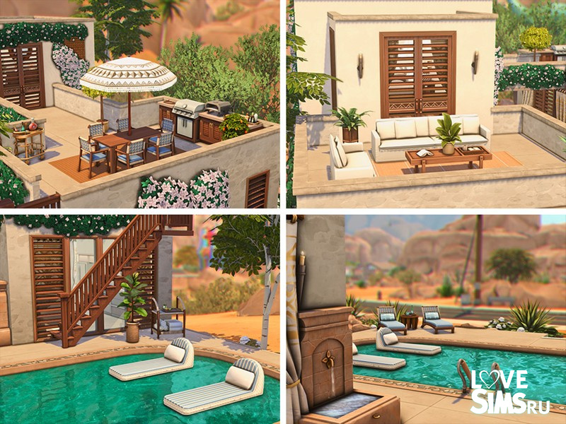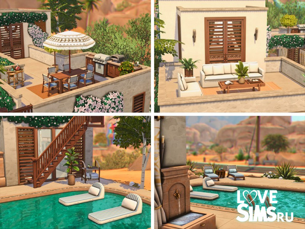 Пространство наполнено светом и воздухом, создавая ощущение лёгкого, тёплого пустынного бриза. Интерьер включает три спальни и открытую кухню. Окружающая территория выполнена настолько живописно, что кажется идеальным солнечным местом для уединения.