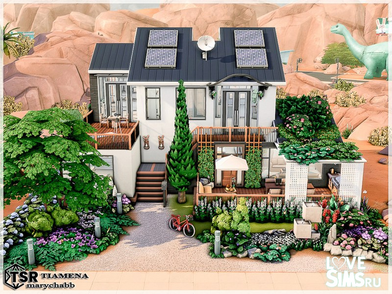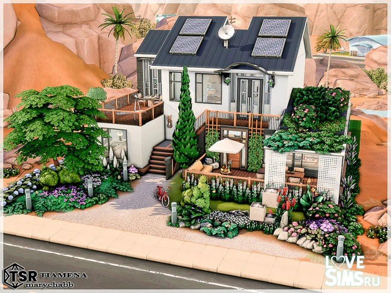 Современный жилой дом, расположенный на просторном участке. Дом имеет двухэтажную структуру с привлекательным фасадом, на крыше установлены солнечные панели и антенна. Перед домом находится ухоженная территория с несколькими зонами отдыха и декоративными садами!