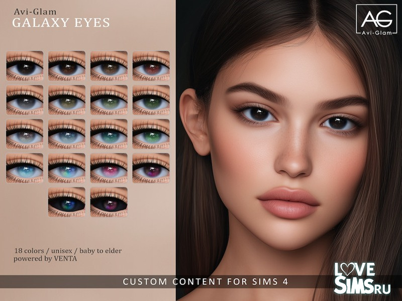 Набор включает восемнадцать вариантов цвета глаз в космическом стиле.
