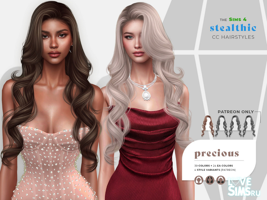 39 цветов + 24 дополнительных цвета (темные корни и омбре). Подходит для головных уборов. Оригинальное название Precious (Hair) от Stealthic.