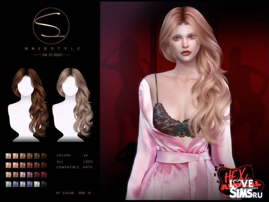 Очаровательная прическа с волнистыми локонами на одну сторону, доступно 24 оттенка волос. Оригинальное название Side-Curly Hairstyle 041025 от S-Club.