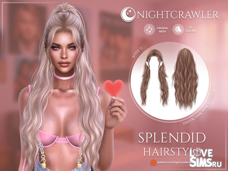 Укладка выполнена в виде высокого хвоста с длинными волнистыми прядями и доступна в 42 цветовых варианта.