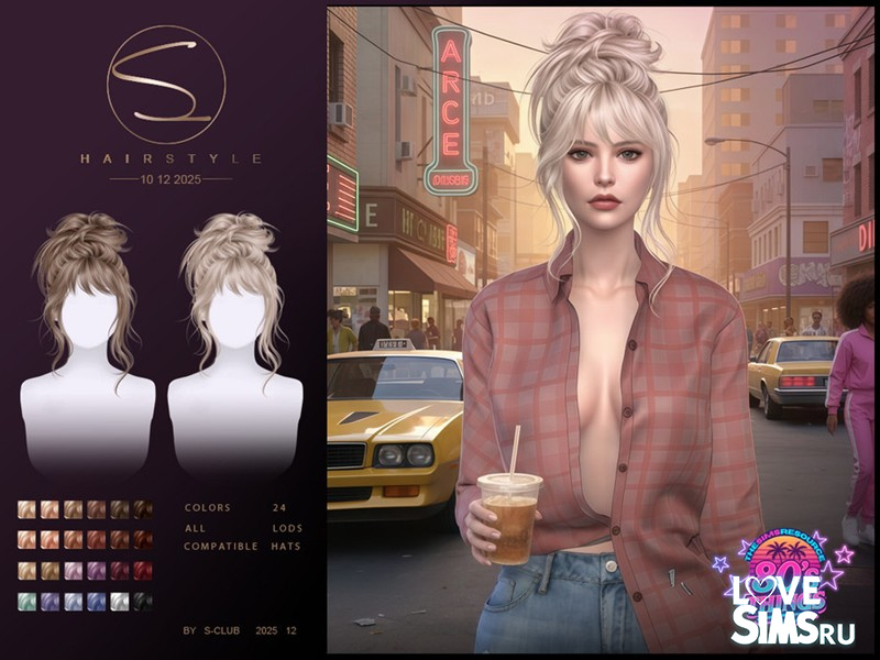 Женская прическа с собранными волосами в небрежный пучок, доступно 24 цвета. Оригинальное название 041225 Fluffy updo hairstyle от S-Club.