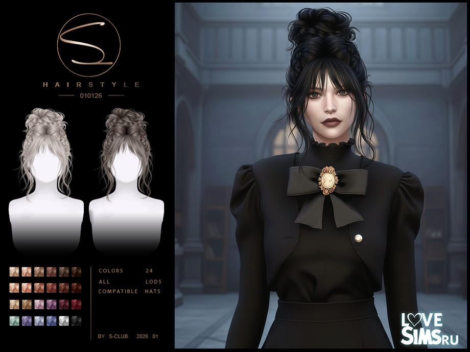 Прическа с высокой укладкой в готическом стиле, представлено 24 образца.