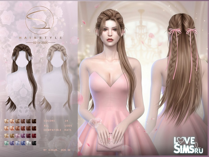 Длинные волосы, заплетенные в косу. Доступно 24 оттенка волос.