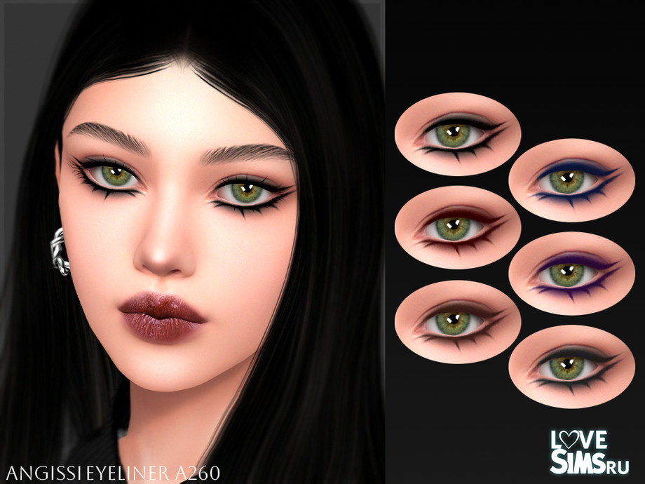 Различные цветовые варианты подводки для глаз. Цвета включают черный, темно-синий, бордовый, фиолетовый, коричневый, темно-зеленый.