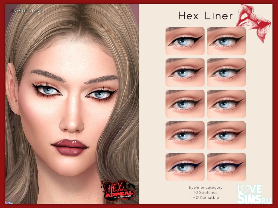 Классическая стрелка для век представлена в десяти различных оттенках и находится в разделе подводок для глаз. Оригинальное название Hex Liner от Lisaminicatsims.