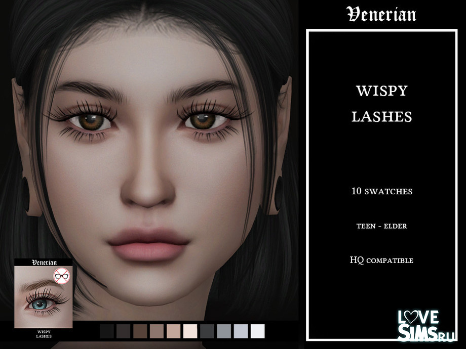 Тонкие ресницы в 10 цветах, доступны от подростка до взрослого персонажа. Оригинальное название Wispy Lashes от Venerian.