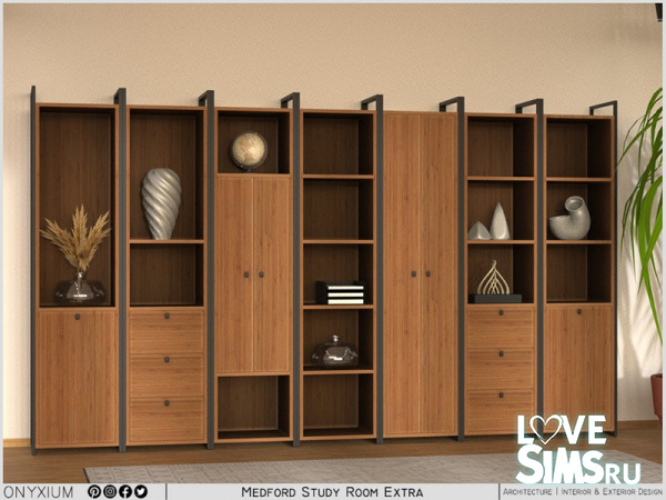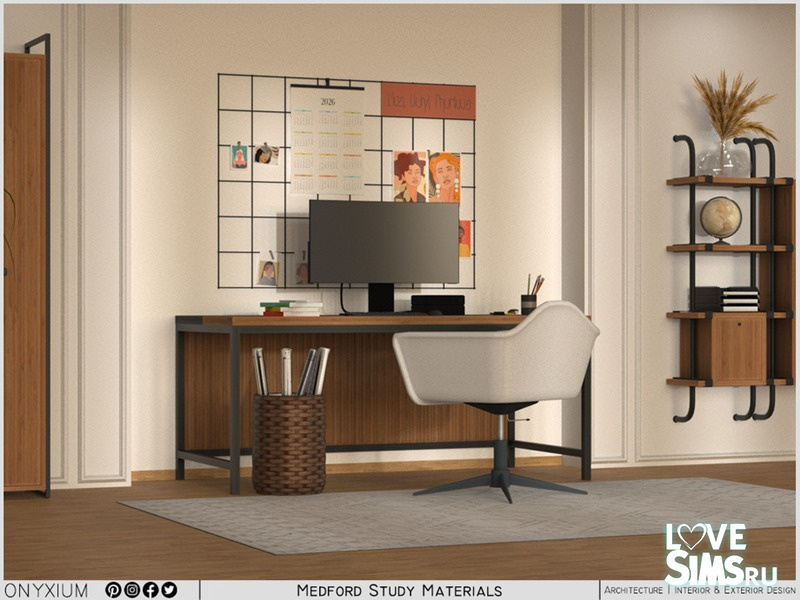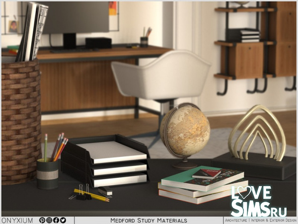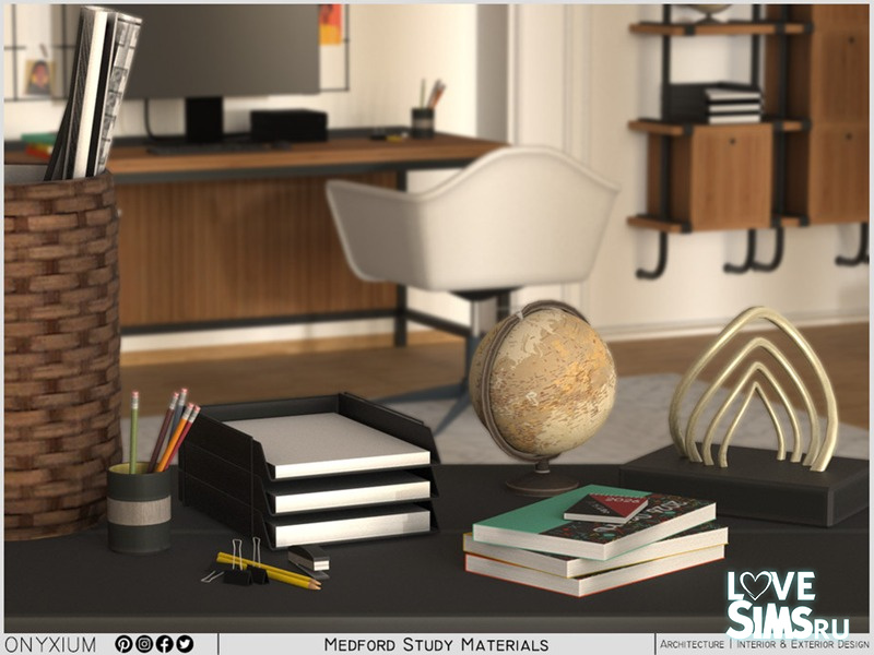 Набор мебели и декора, предназначенный для создания стильного и функционального офисного пространства для персонажей в игре.