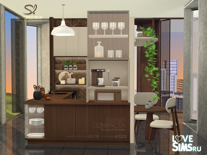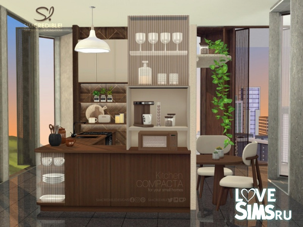 Представляем вашему вниманию компактную кухню и технику для ваших симов. Эта кухня была спроектирована для небольших квартир и в ней полно шкафчиков для хранения кухонной утвари и других принадлежностей ваших симов.