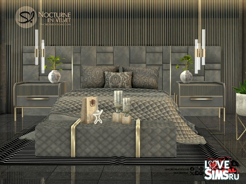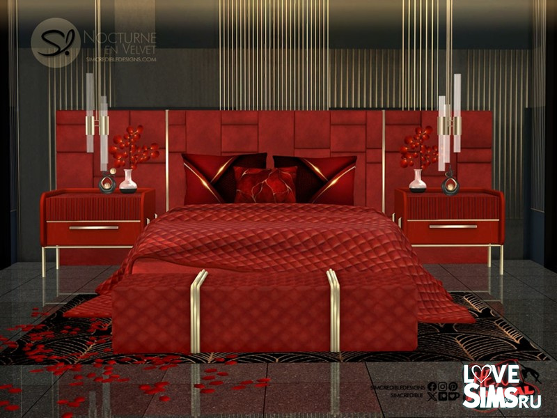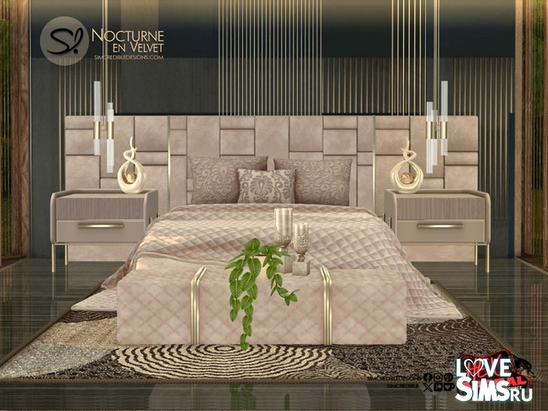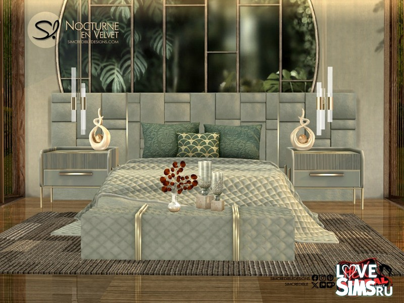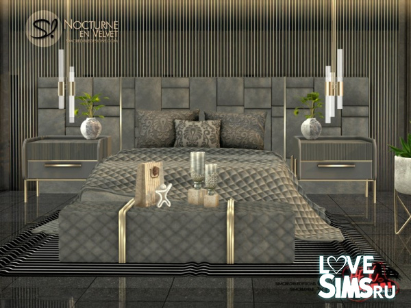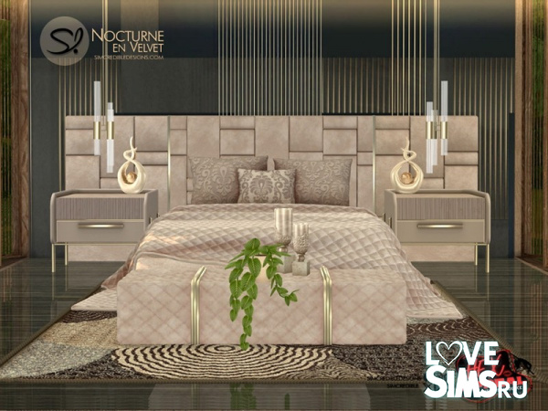 Новая роскошная романтическая спальня для ваших симов. Мягкая бархатная и золотистая отделка в этом наборе сочетает в себе комфорт и нотки ар-деко. Потому что ваши симы заслуживают изысканности и элегантности.