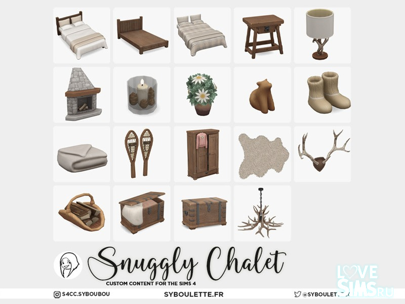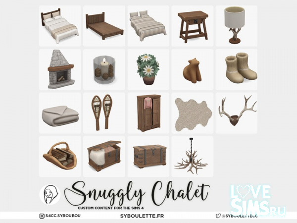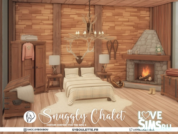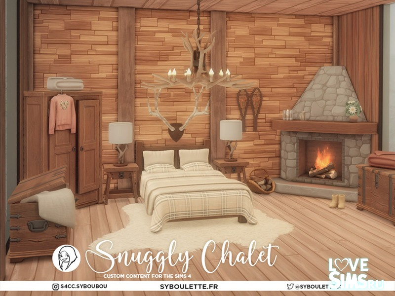 Уютное шале - это теплый спальный гарнитур в деревенском стиле, созданный для зимних дней, когда все, что вам нужно. Одеяло, камин и никаких праздничных мелодий. Благодаря двуспальной кровати с раздельным матрасом, прочному комоду, сундуку в деревенском стиле и угловому камину в полной комплектации maxis идеально подходит для того, чтобы поразмышлять или разморозить пальцы ног.