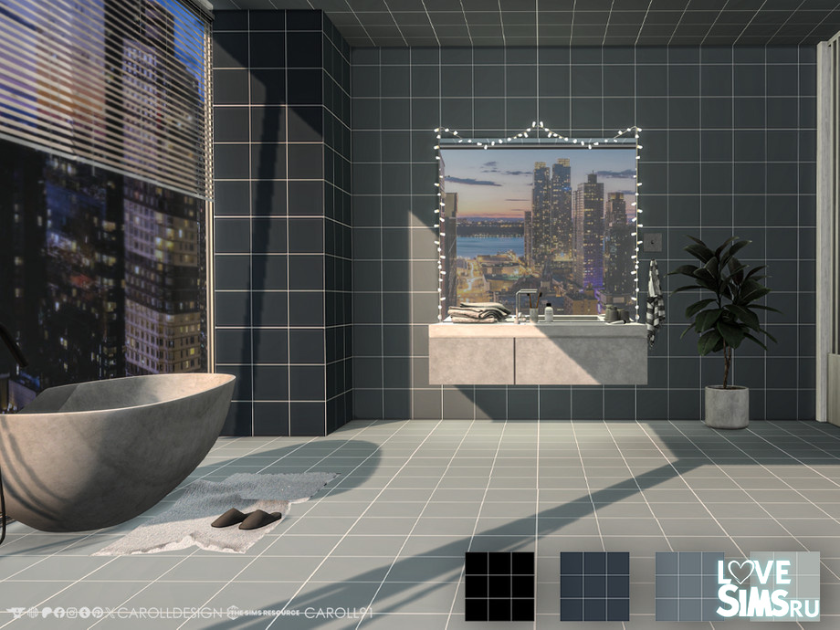 Набор из 4 образцов однотонной плитки для стен в черных и серых тонах. Подходит для использования внутри помещений, особенно в ванных комнатах, кухнях и общественных бассейнах.