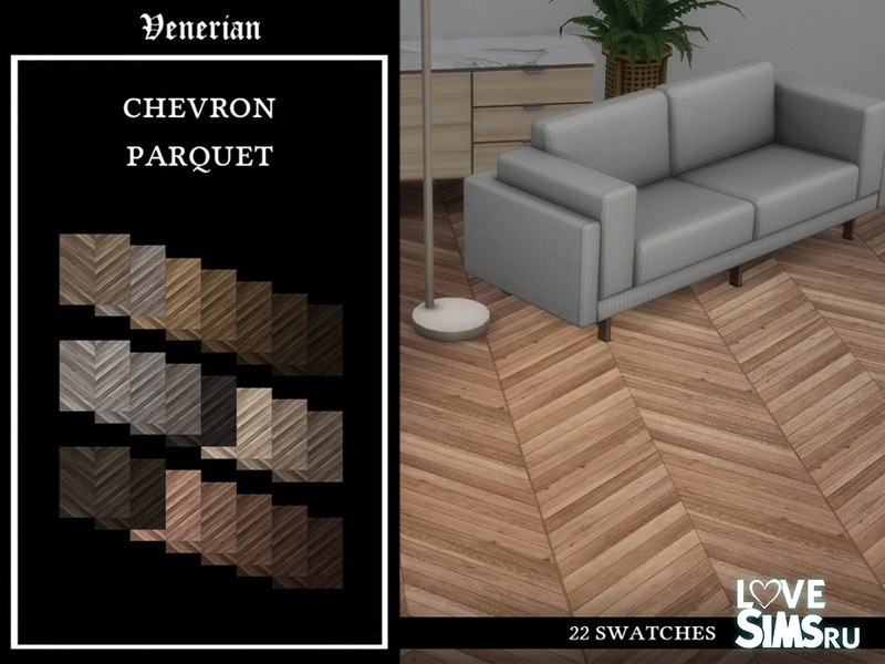 Шевронный паркетный пол в 22 цветах. Оригинальное название Chevron Parquet Floor от Venerian.