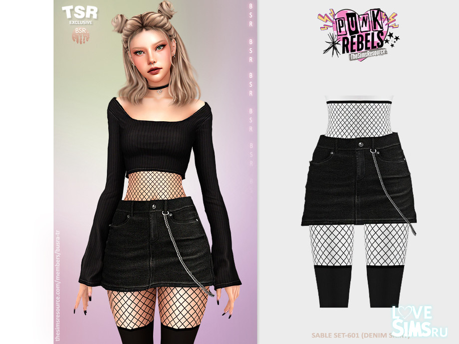 Короткий топ с длинными рукавами вместе с джинсовой мини-юбкой, украшенной цепочкой, предлагается в десяти цветовых вариантах. Оригинальное название SABLE SET-601 от busra-tr.