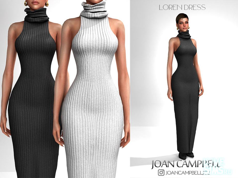 Модель облегающего платья в рубчик, длиной до пола, с высоким воротником-горлом. Предлагается в семи разных оттенках. Оригинальное название LOREN DRESS от Joan Campbell Beauty.