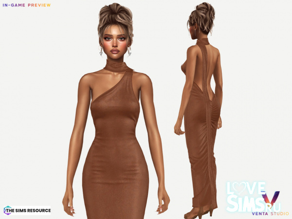Элегантное вечернее платье с одним рукавом и вырезом на спине доступно в пяти различных оттенках. Оригинальное название Norma Dress от VentaStudio.