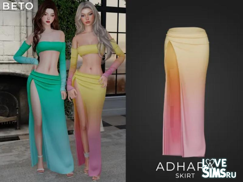 Летний комплект, наполненный яркими цветами. Он включает в себя топ с длинными рукавами и длинную юбку с разрезом. Оригинальное название Adhra от Beto_ae0.