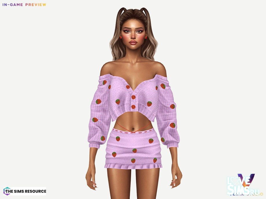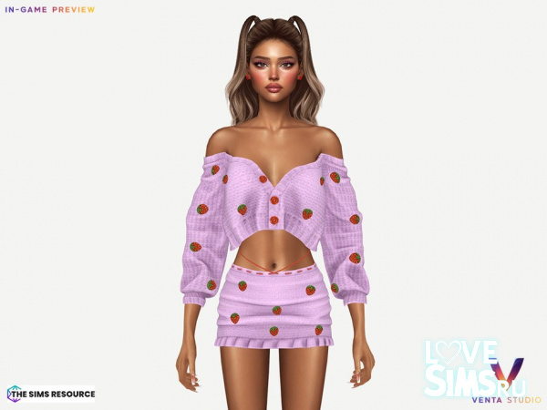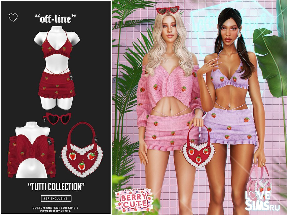 Набор из пяти элементов одежды включает в себя топ-бра, свитер, юбку, сумку и солнцезащитные очки. Предлагается выбор из 63 различных оттенков. Оригинальное название Tutti Collection от VentaStudio.