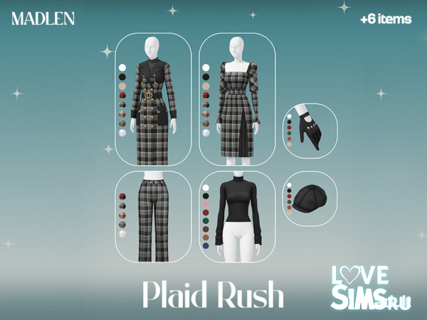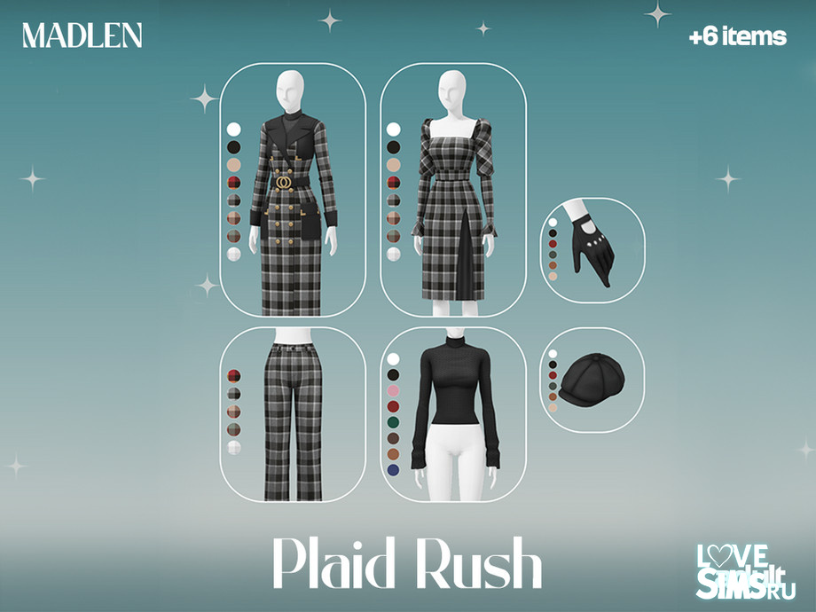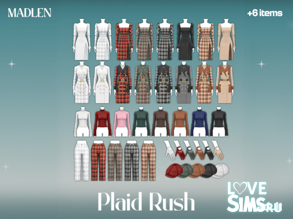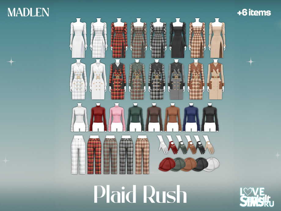 Подчеркните утонченную атмосферу уюта! В данной линейке, выполненной в классическом клетчатом дизайне, представлены шесть предметов гардероба: тёплое пальто, платье с квадратным вырезом, аксессуары перчатки, стильная шляпа, водолазка с высокими воротником и элегантные брюки.