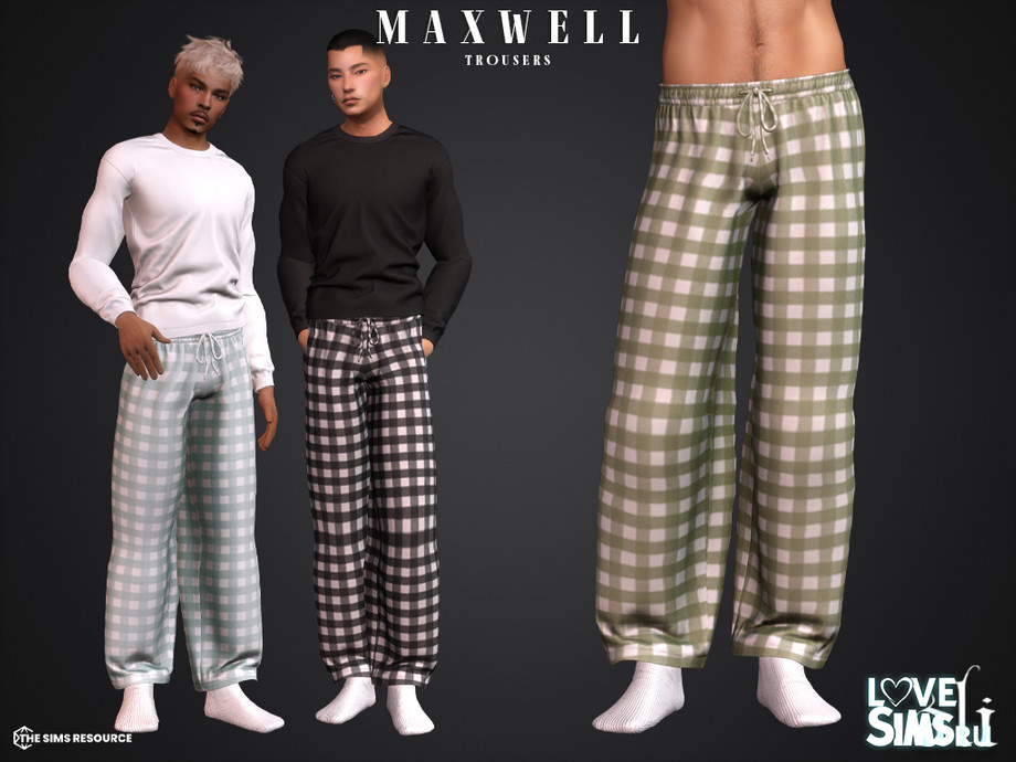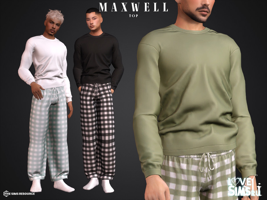 Домашняя одежда для симов мужчин, комплект включает в себя лонгслив и просторные штаны. Предлагается десять различных оттенков. Оригинальное название MAXWELL от ali.