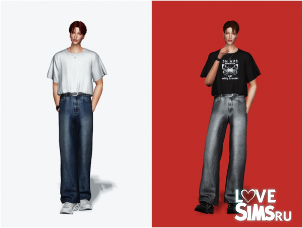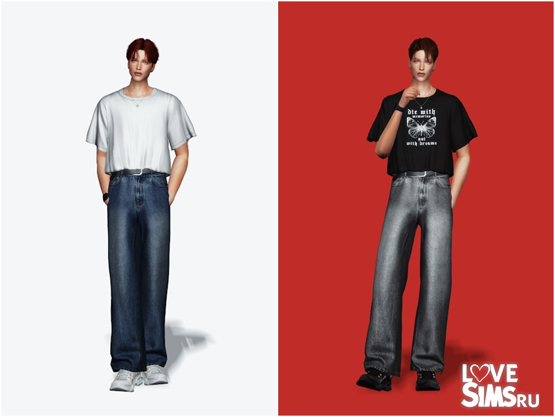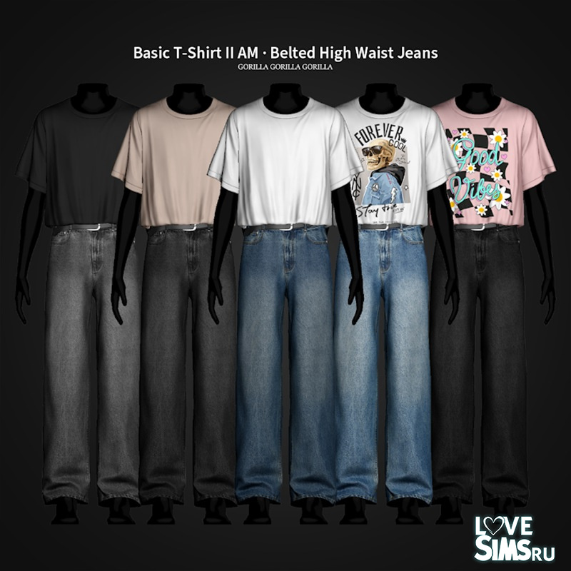 Базовая футболка в тридцати разных оттенках и джинсов с поясом высокой посадки, представленных в семи различных цветах. Оригинальное название Basic T-Shirt II AM · Belted High Waist Jeans от gorillax3.
