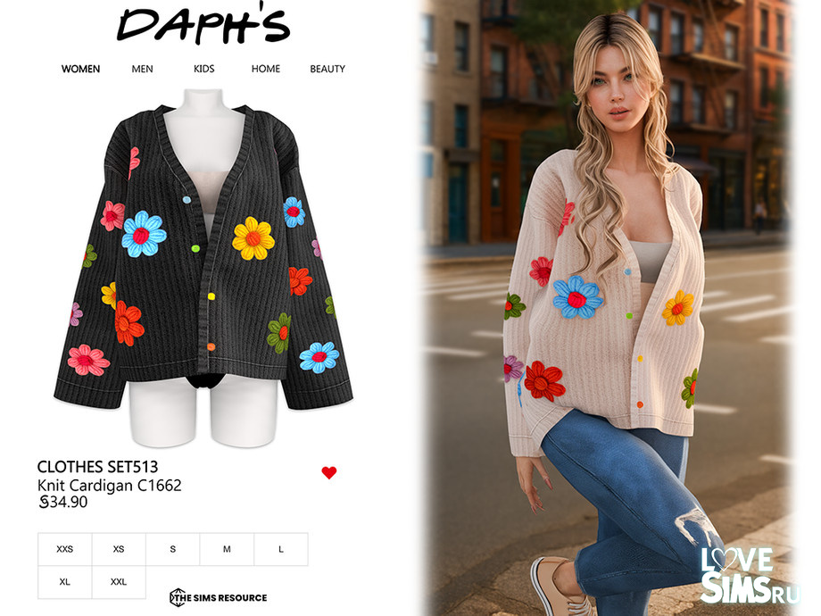Вязанный кардиган для симочек, украшенный красочными цветами, доступен в восьми различных цветах. Оригинальное название Knit Cardigan C1662 от Daph's.