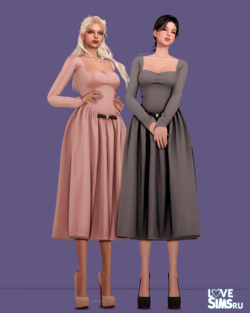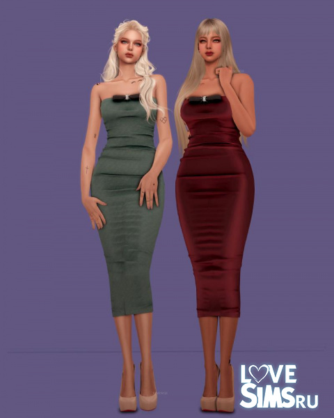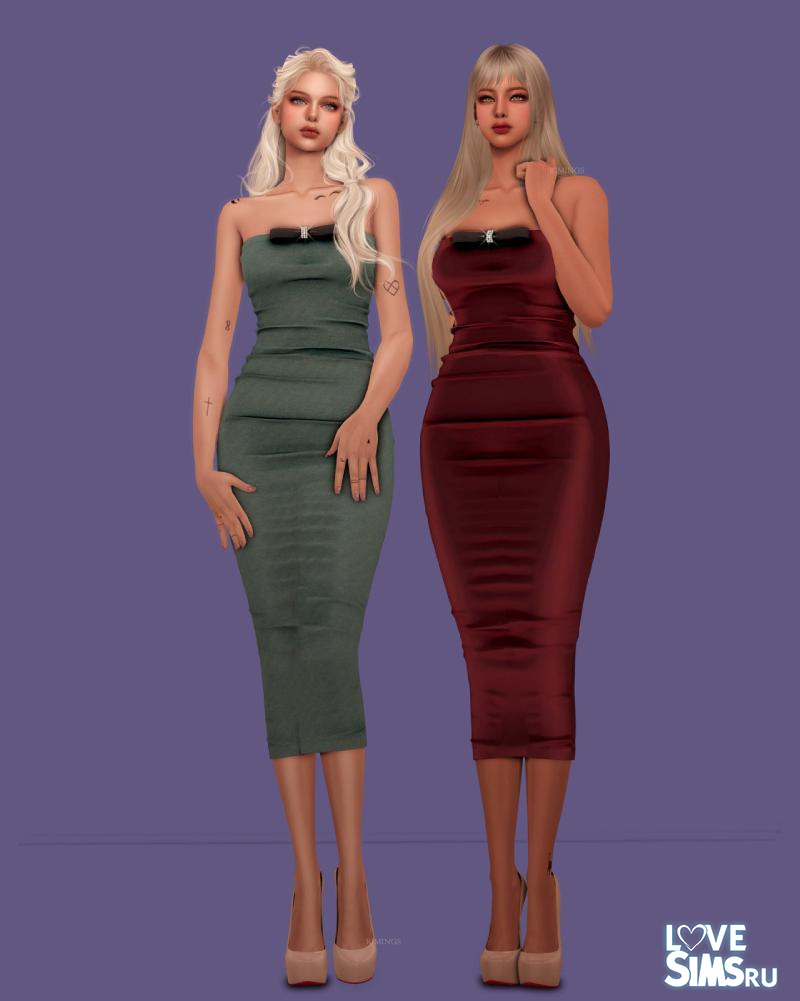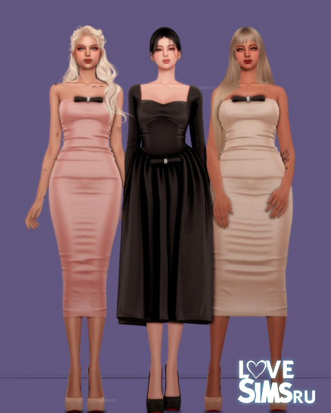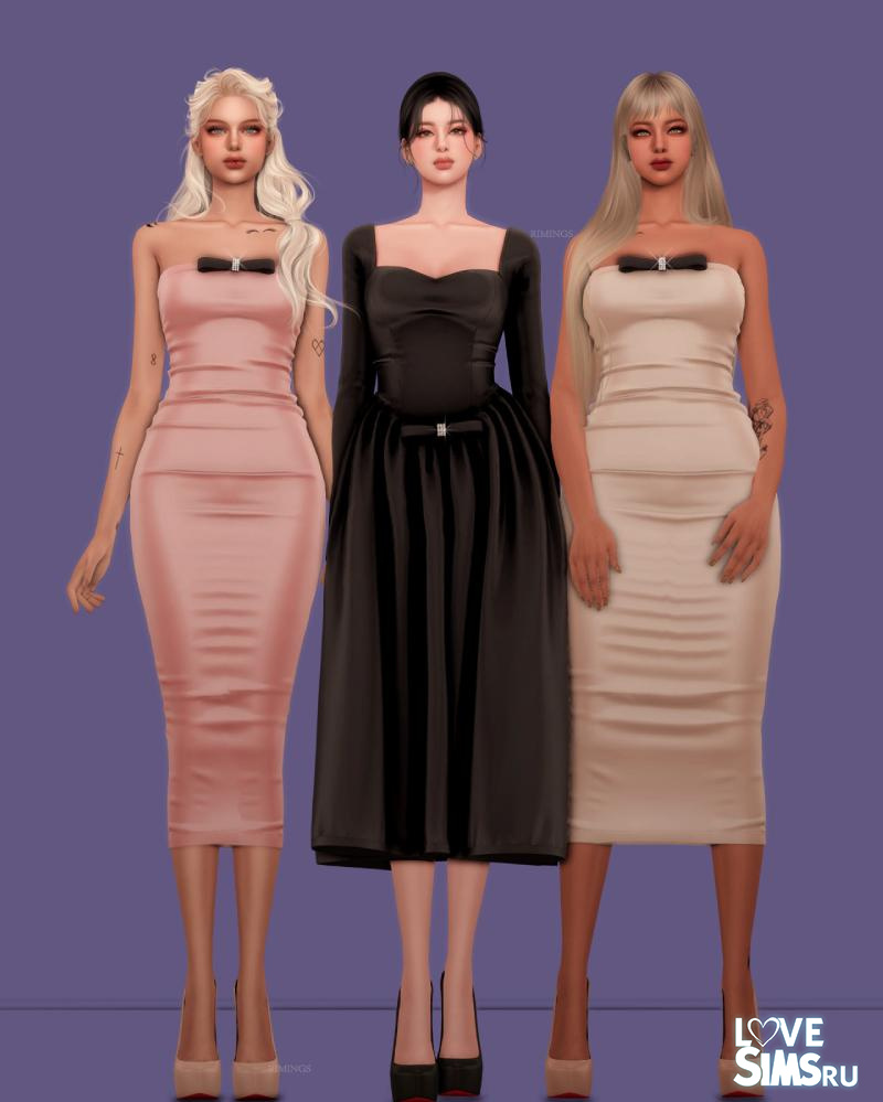 В коллекцию вошли два платья из шелка. Первое с рукавами и пышной юбкой, украшенное бантом на талии, второе облегающее платье бандо с украшением на груди. Также в наборе есть серьги в форме бантика.