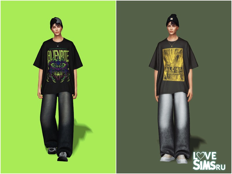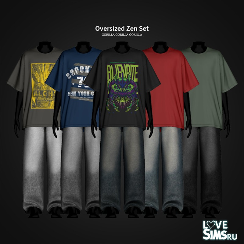Этот набор для персонажа состоит из свободной футболки в 30 цветовых вариантах и мешковатых джинсов в 7 оттенках. Оригинальное название Oversized Zen Set от gorillax3.