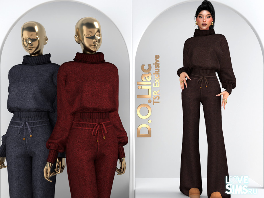 Теплый и стильный комплект, включающий джемпер и широкие брюки, предлагается в шести цветовых вариантах.