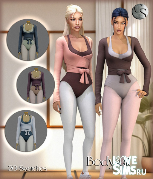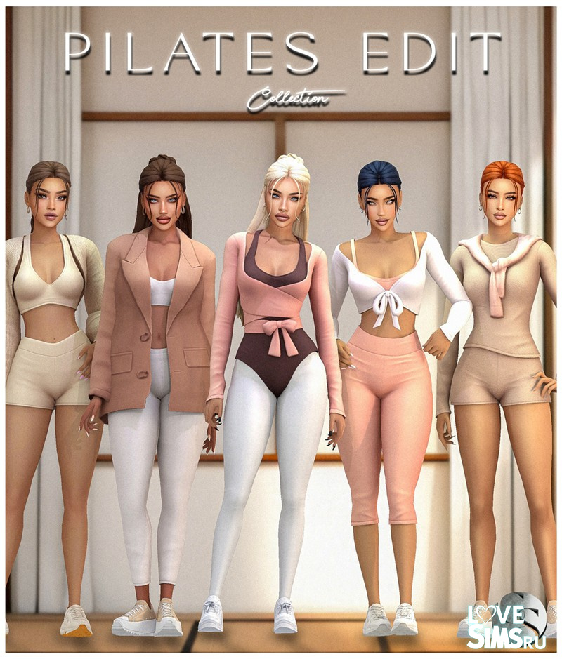 Эта большая коллекция в спортивном стиле для занятий пилатесом включает в себя боди и носки, леггсинсы, шорты, пиджакт, кардиган, блузку, свитер на плечи, прическу и косу пони!!