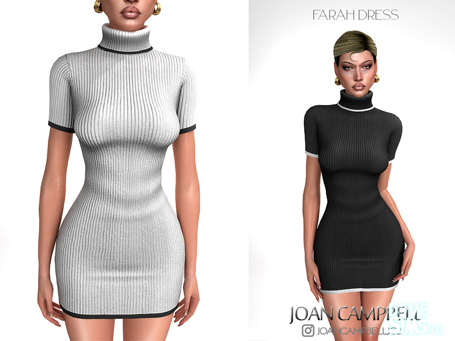 Короткое платье в рубчик и высоким воротником-стойкой, доступно 6 цветов.
